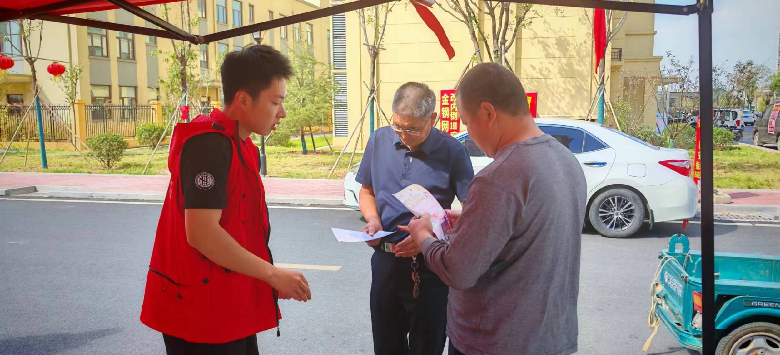 日照莒縣分公司后勤營(yíng)銷小組與店子集工作站在店子集街道棚改小區(qū)山水文苑做地推走訪宣傳,協(xié)調(diào)回遷戶遷移安裝,推廣惠民套餐。圖中左一為工程技術(shù)部林皓楠在地推現(xiàn)場(chǎng)發(fā)放宣傳單頁(yè)介紹公司業(yè)務(wù)。